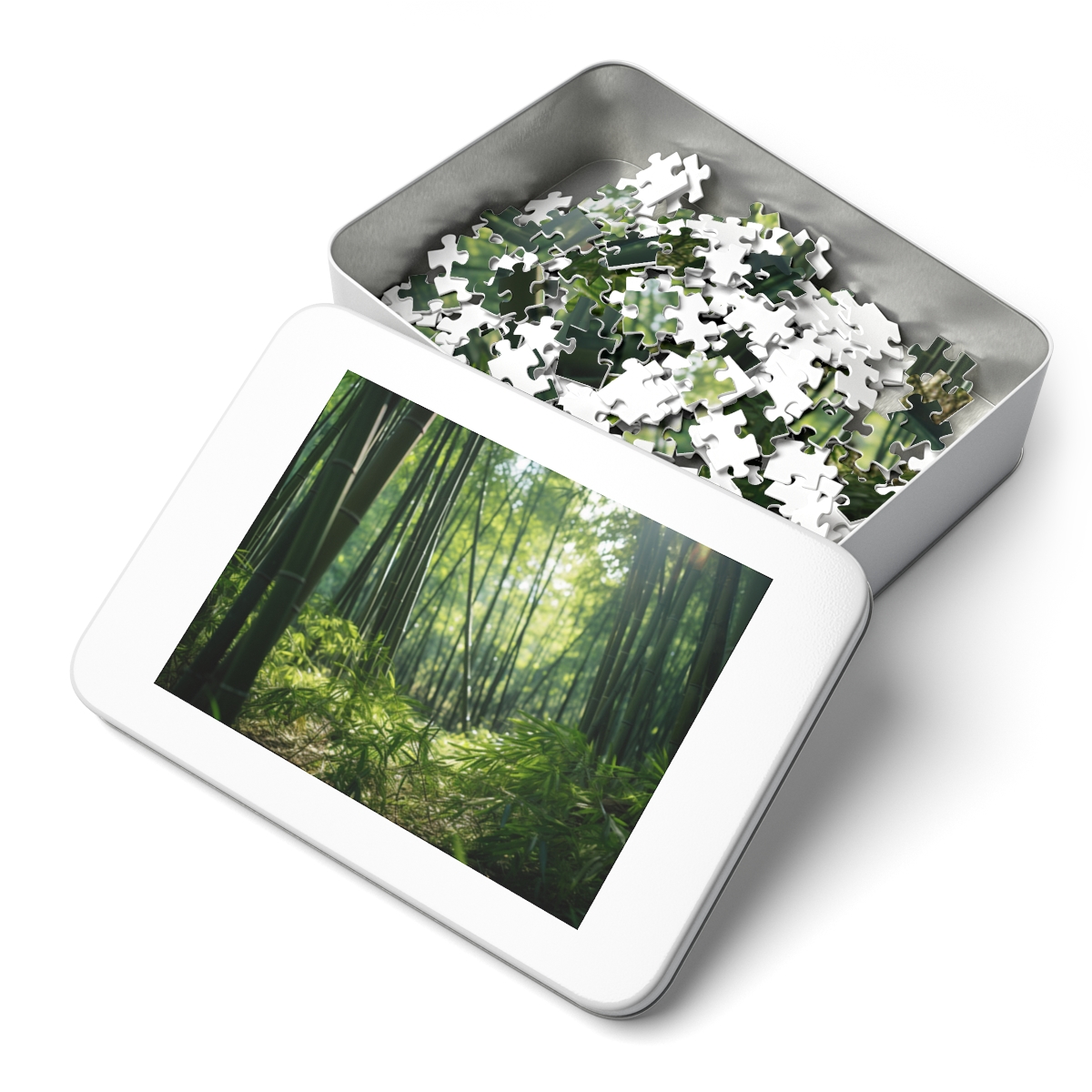 .: White metal tin box with finished image on the cover